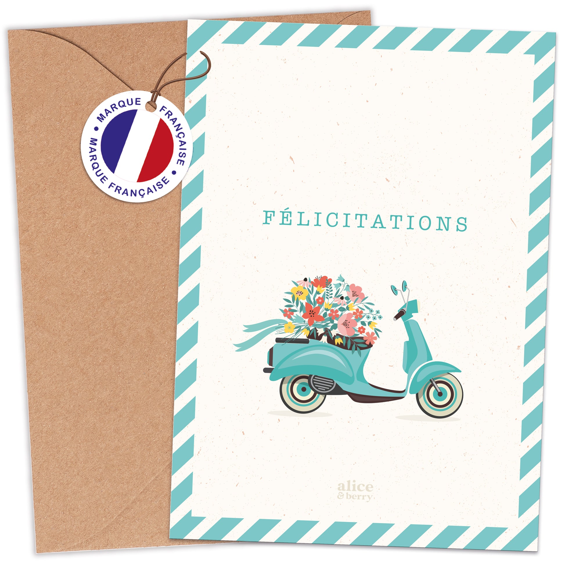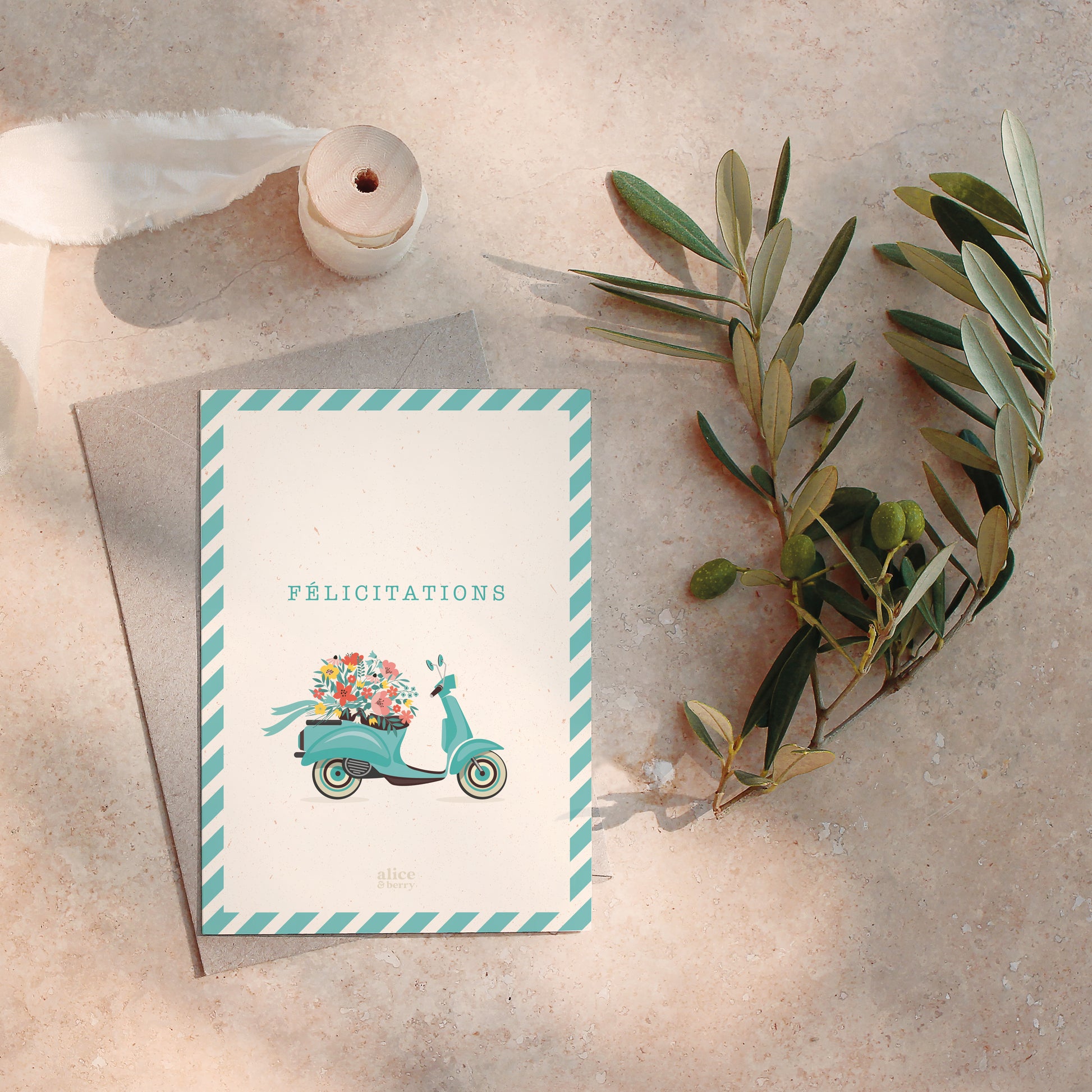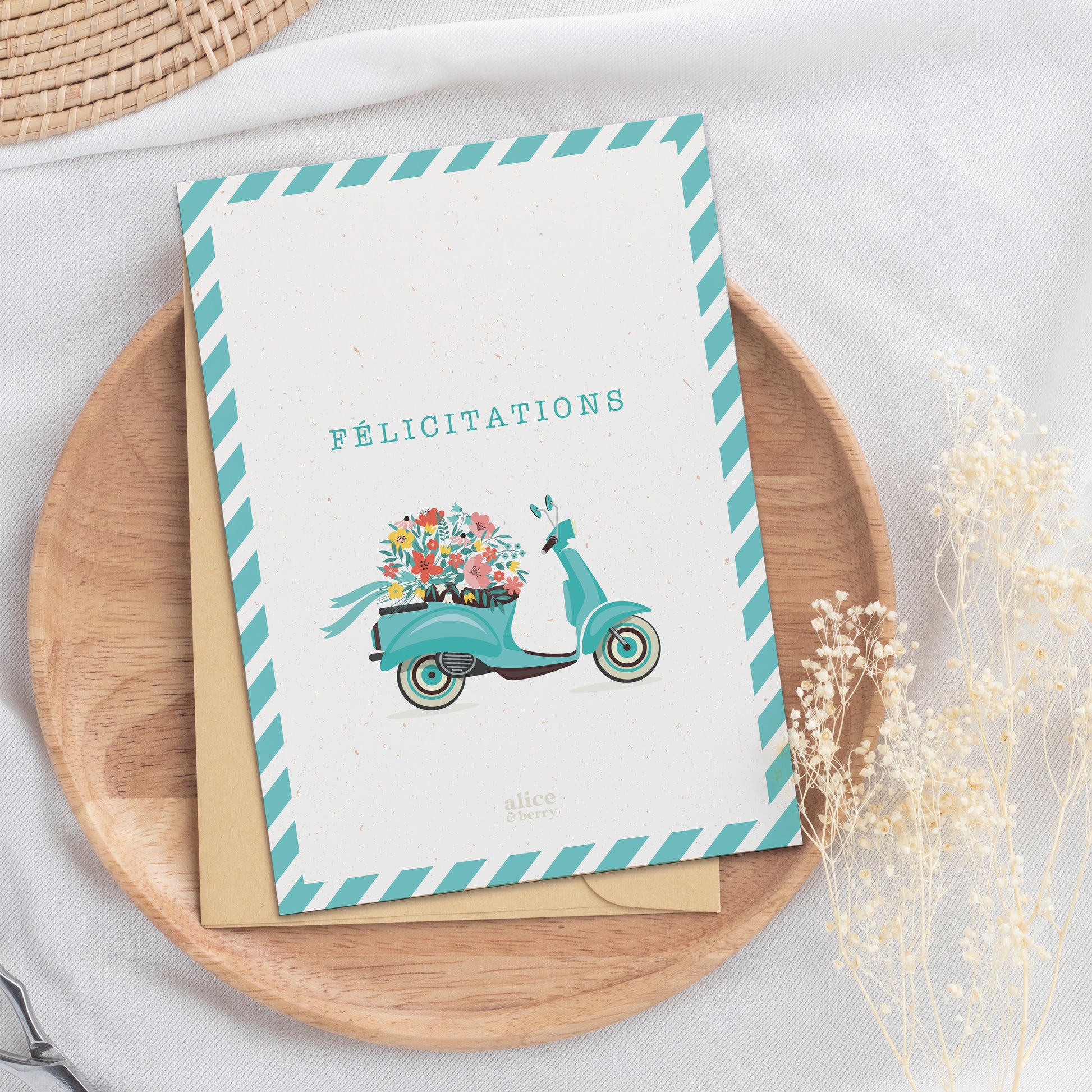 Carte de vœux mariage Vespa – Félicitations vintage avec enveloppe