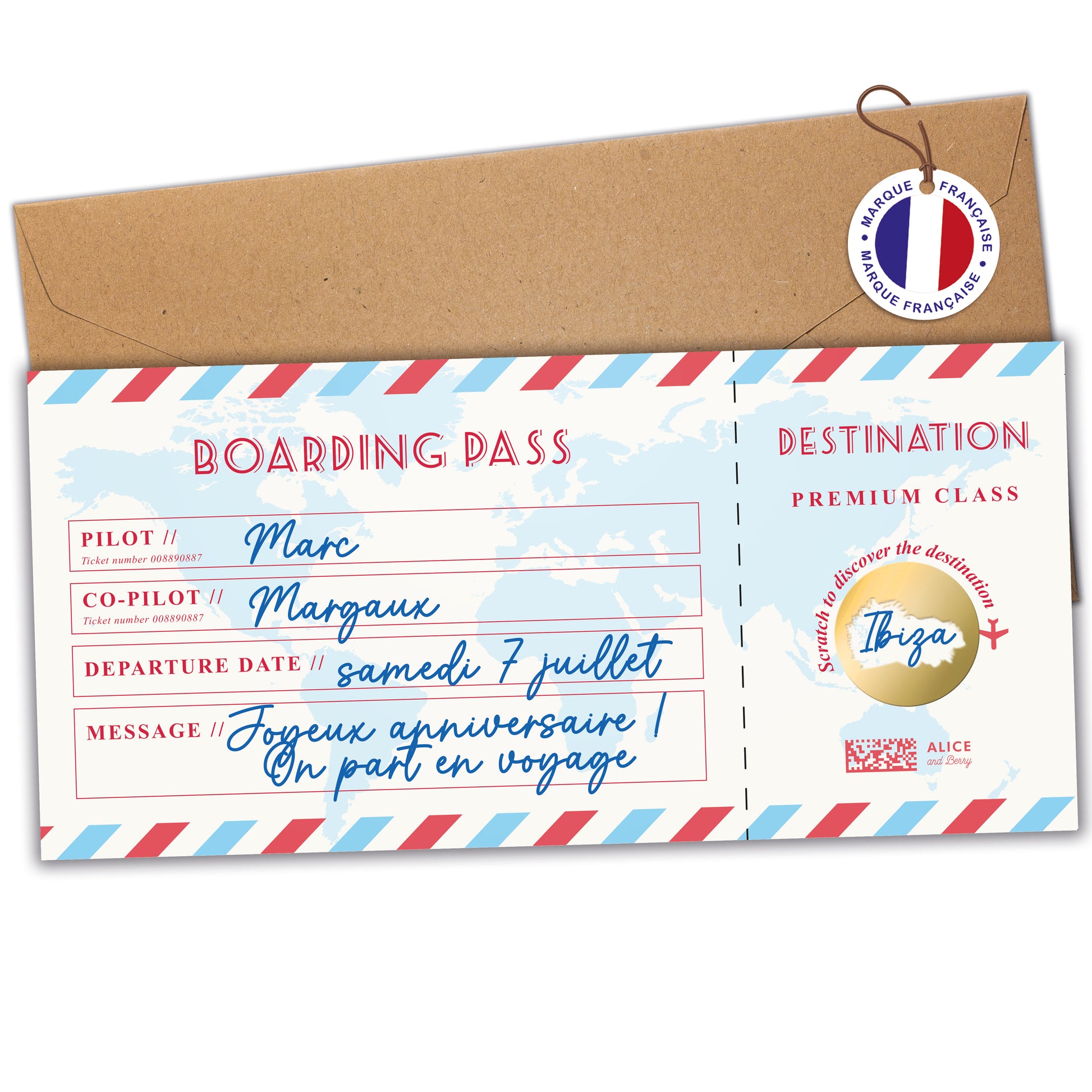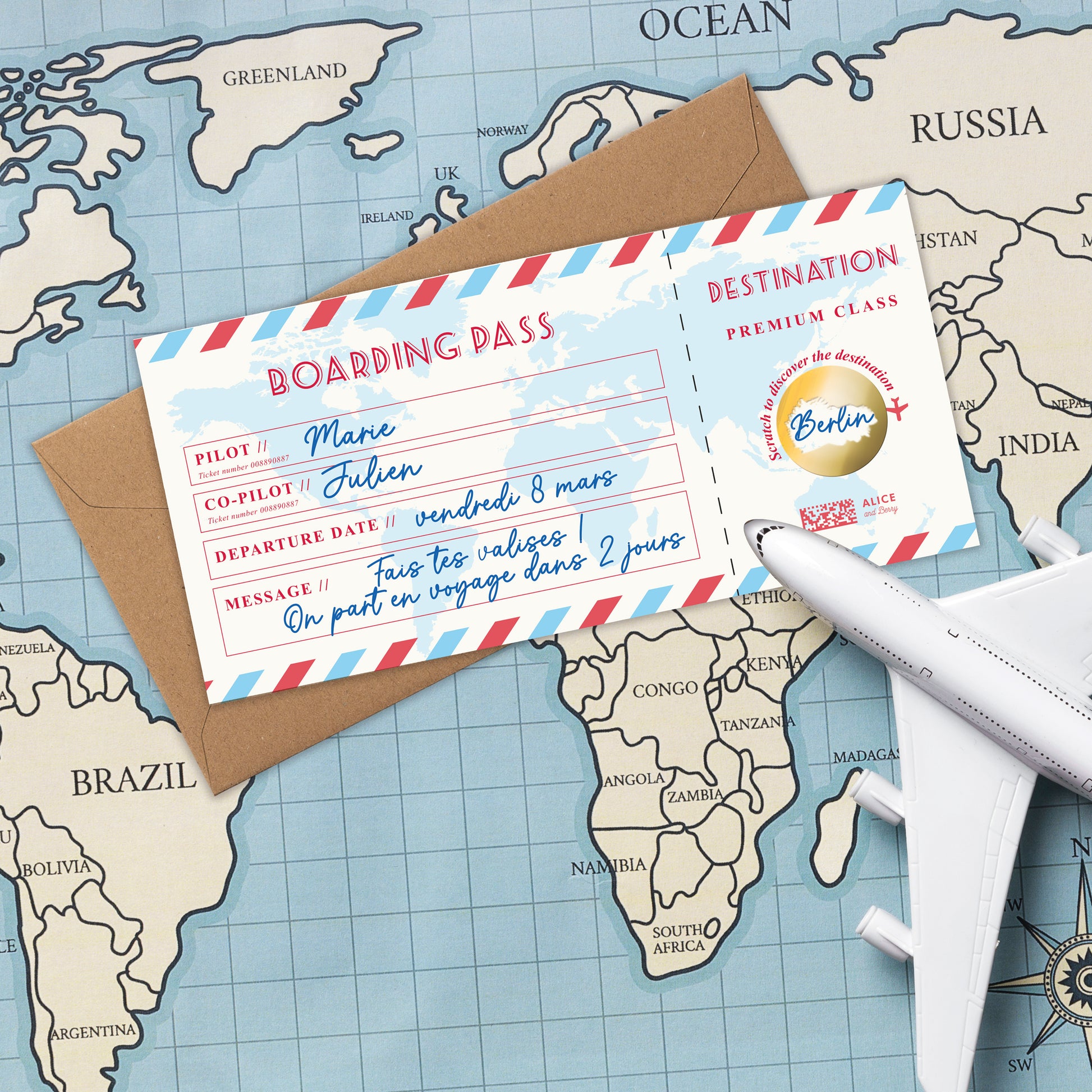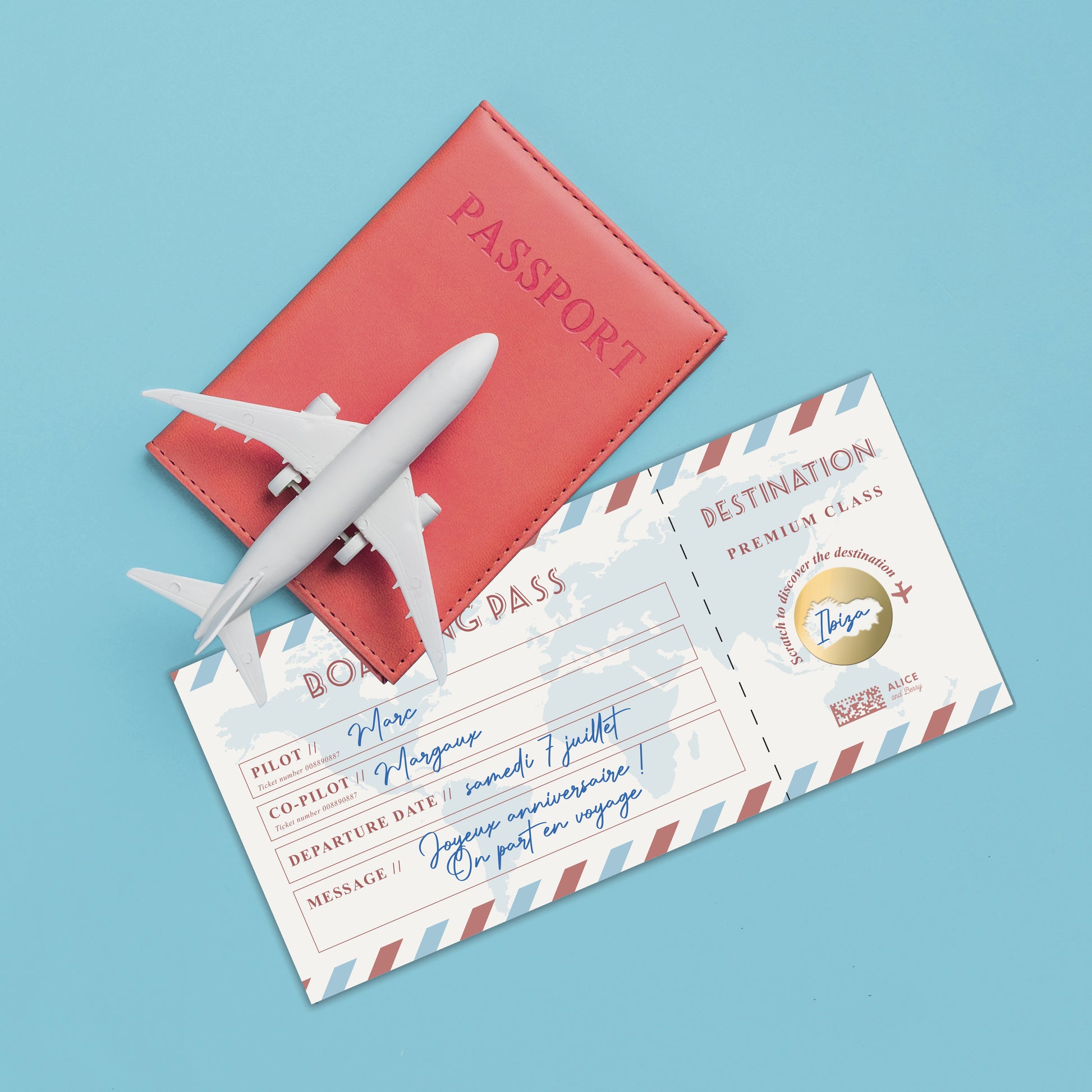 Carte à Gratter Voyage Surprise | Billet d’avion Personnalisable - Boarding Pass