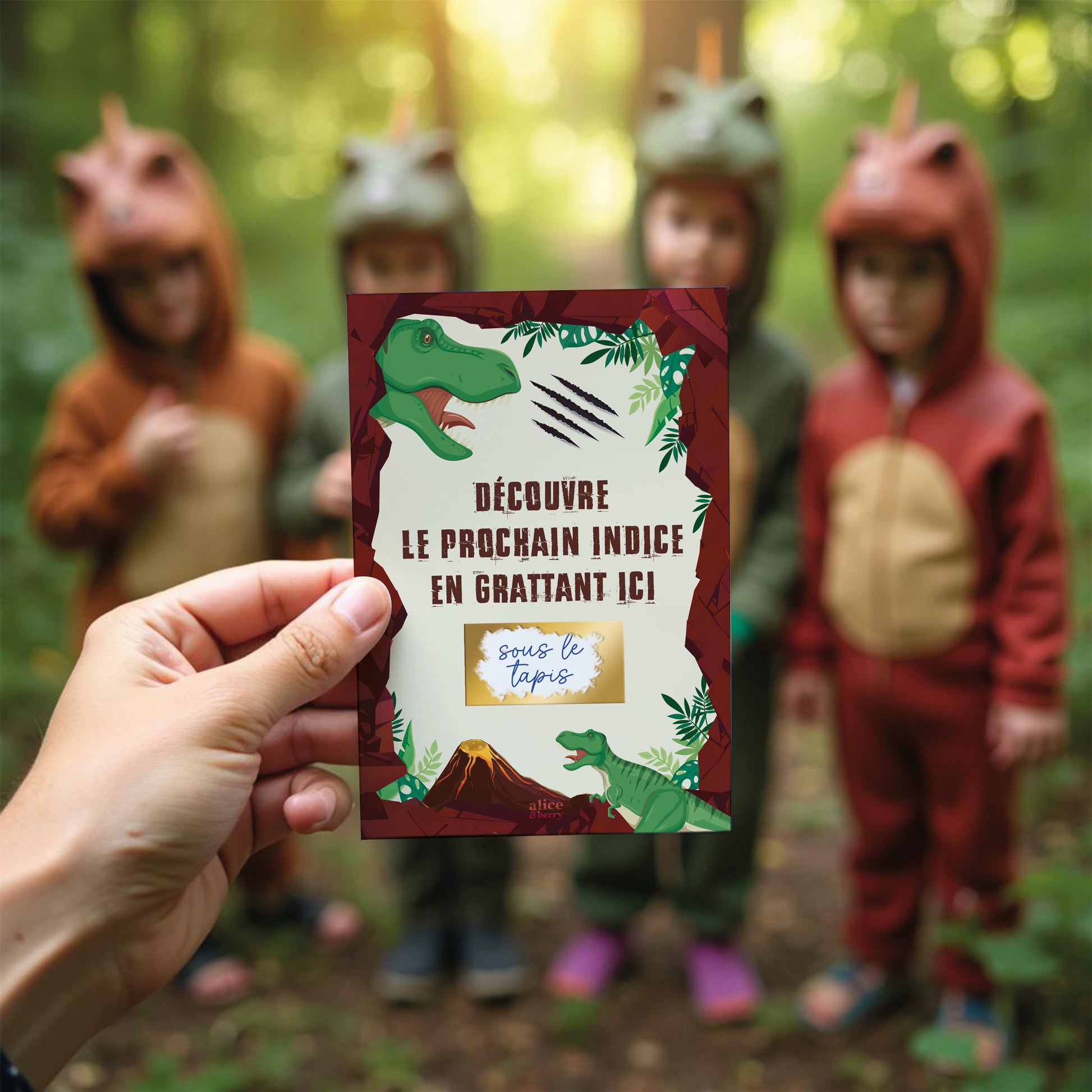 Plongez dans l'ère des dinosaures ! Notre chasse au trésor est un jeu personnalisable qui promet de l'aventure. Les enfants partent à la recherche d'indices sur 8 cartes à gratter que vous aurez cachées. Facile à organiser, c'est l'activité idéale pour un anniversaire ou un goûter entre amis, qu'il pleuve ou que le soleil brille. Un vrai voyage dans le temps qui mènera vos petits explorateurs au trésor final !