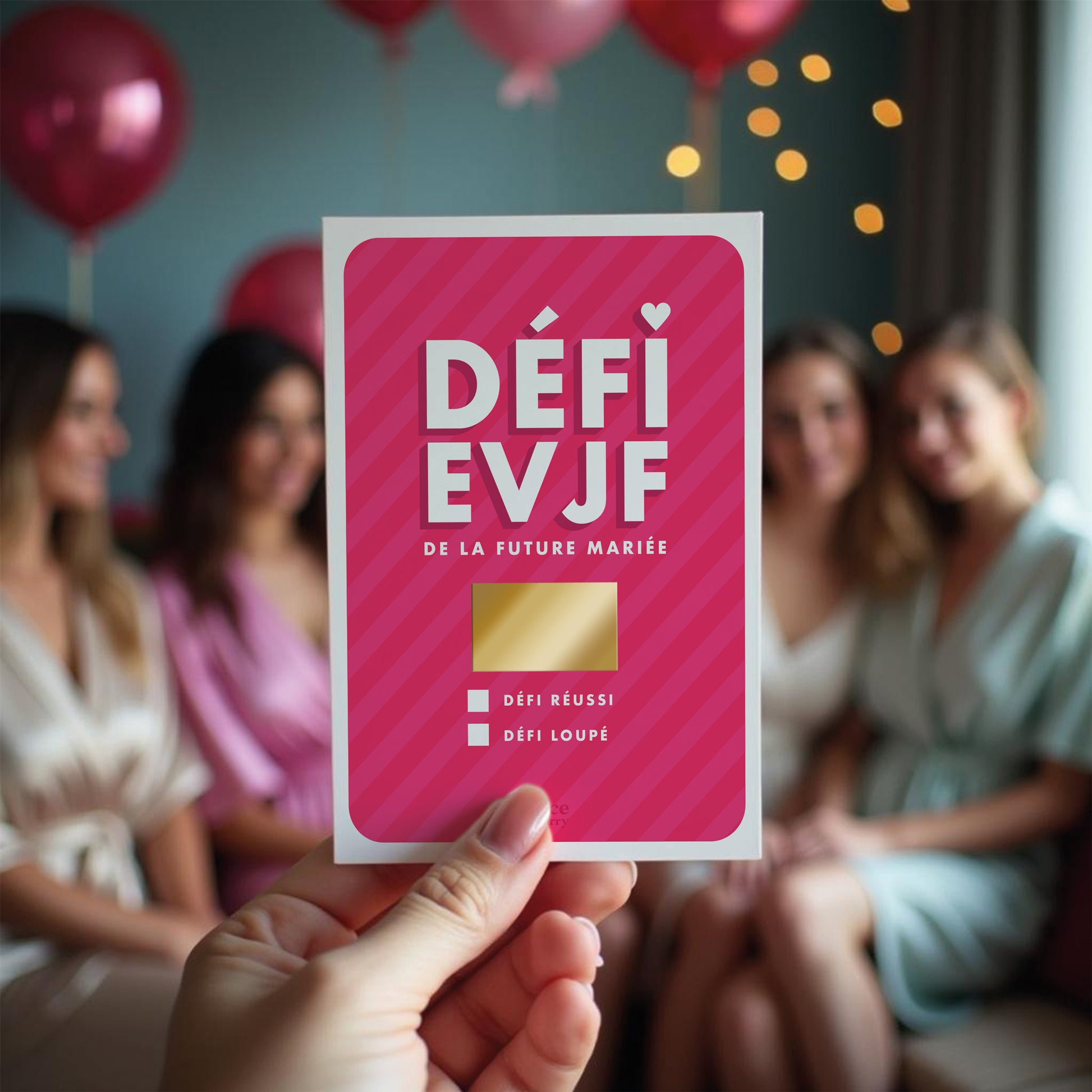 Préparez un EVJF mémorable avec ce pack de cartes à gratter spécialement conçu pour faire rire, surprendre et souder toute la Team Bride. Chaque carte cache un défi choisi par vous : sage, drôle ou complètement fou… la future mariée les découvrira en direct, pour un moment plein de complicité et d’émotions.